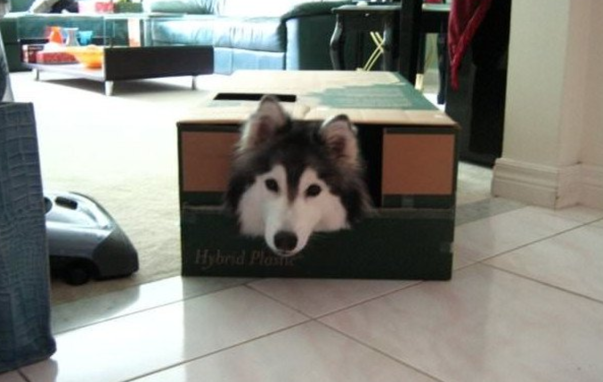 This beautiful canine named Tally aka Tao Tao (which means mischievous in Chinese) is a Husky and Malamute mix. (Huskies and Malamutes have many of the same physical traits so her appearance is that of a Husky at first glance). However, Tally was raised from a pup in a house full of cats. Or at least that’s what her current owner thinks. There aren’t actually any photos of Tally with cats but her behaviors and her personality mimic that of a typical cat.
